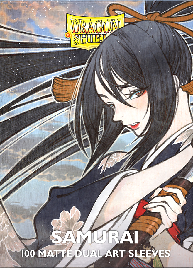 Stunning new Dragon Shield Matte Dual Art Sleeves featuring artwork by Japanese artist Yumeko. Using voice actor and content creator Mana Hatanaka as a model, Yumeko fuses a traditional Japanese style of illustration with Hatanaka’s signature stylishness to create this gorgeous Samurai artwork.