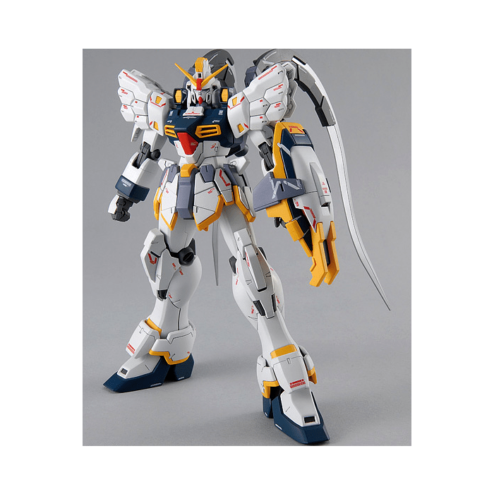 A Master Grade version of Sandrock from Wing Gundam has been on many fans' want list for a long time now. Now Bandai answers those pleas with their MG Sandrock Endless Waltz version! Like the other MG Wing kits released in 2011 (linked below), Sandrock comes with his signature weapons, in Sandrock's case the Heat Shotel, which utiiize effect parts and can be used in a variety of ways attaching to different sections of the kit. As well, plenty of markings stickers are provided for that Ver Ka. look. Don't miss him!