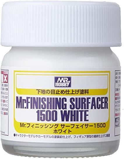 Mr. FINISHING SURFACER provides a smooth finish on the surface of parts and does not easily fill in molded areas. The white FINISHING SURFACER released this time is most suitable for final finishing before painting a character model or car model or for final finishing of the base form of figure painting that calls for bright colors.