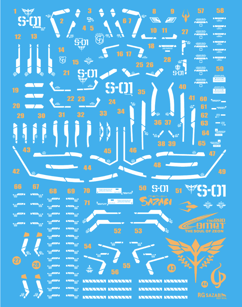 Delpi Decals RG Sazabi White & Gold Holo Water Decal